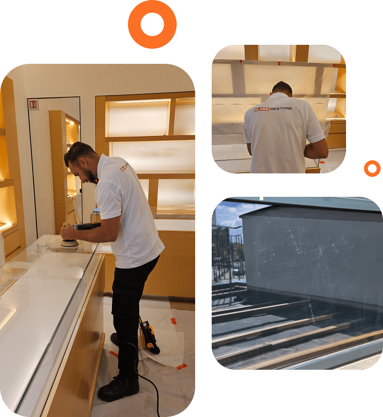 Glass-restore is gespecialiseerd in het herstellen van beschadigd glas, zoals krassen, slijtplekken en tags, met behulp van een exclusief proces dat onberispelijke resultaten garandeert zonder vervorming. Voortbouwend op onze expertise hebben we onze diensten uitgebreid met de restauratie van PVC en aluminium schrijnwerk en RENOLIT reparaties, vooral na beschadigingen.